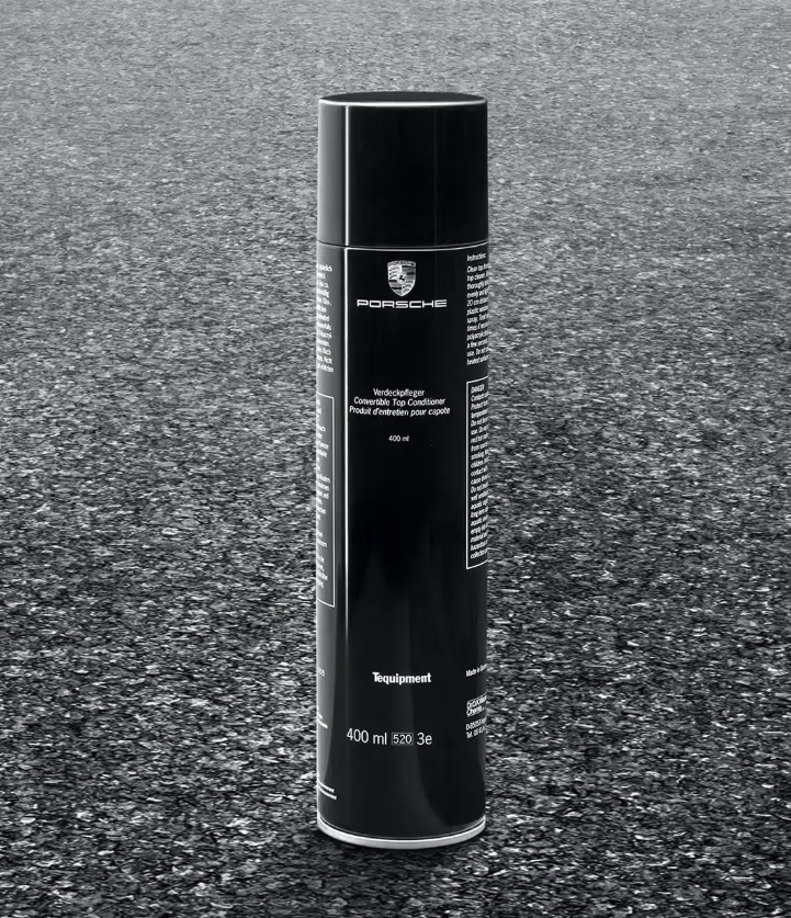 Melhore a aparência e a durabilidade do seu Porsche conversível com o nosso Kit de Cuidados para a Capota Conversível. Este kit completo inclui um frasco spray de 400 ml de condicionador premium, especialmente formulado para proteger e revitalizar a capota de tecido. Nossa fórmula de tratamento de longa duração, que protege o tecido, garante resultados duradouros e desempenho ideal.