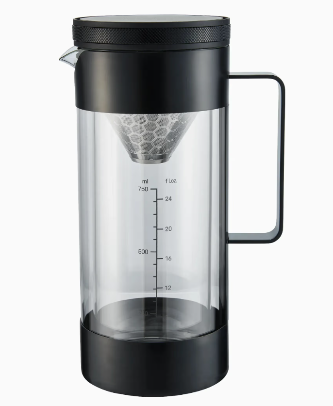 Cafeteira de filtro manual da Studio FA Porsche – com revestimento em aço inoxidável, vidro borossilicato de parede dupla e filtro reutilizável em aço inoxidável.