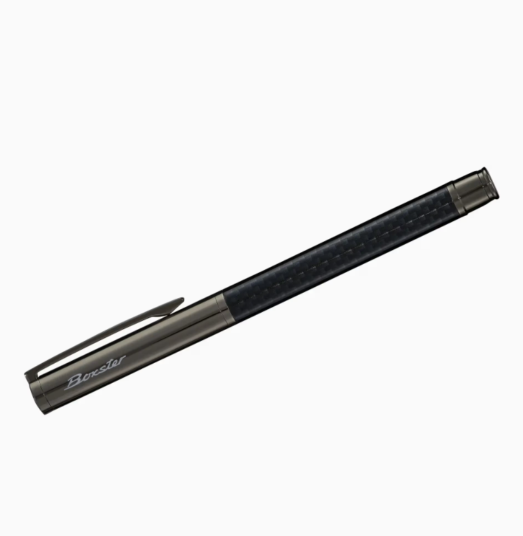 Pôr o desempenho no papel: a esferográfica Porsche de alta qualidade com recarga azul. O logótipo da Porsche e o nome do modelo Boxster adornam a tampa da caneta. O seu design ergonómico também permite longos períodos de escrita sem esforço.