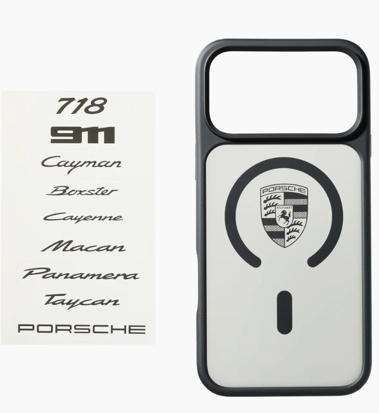 Porsche Performance – para o bolso das calças: a capa de alta qualidade para o iPhone® 17 Pro Max é realçada pelo emblemático Escudo da Porsche. A moldura da câmara de alumínio proporciona um toque de estilo e proteção adicional. Graças à compatibilidade MagSafe, o carregamento sem fios é possível em qualquer altura. Um destaque especial: a capa pode ser personalizada com os autocolantes fornecidos com as inscrições dos veículos Porsche.