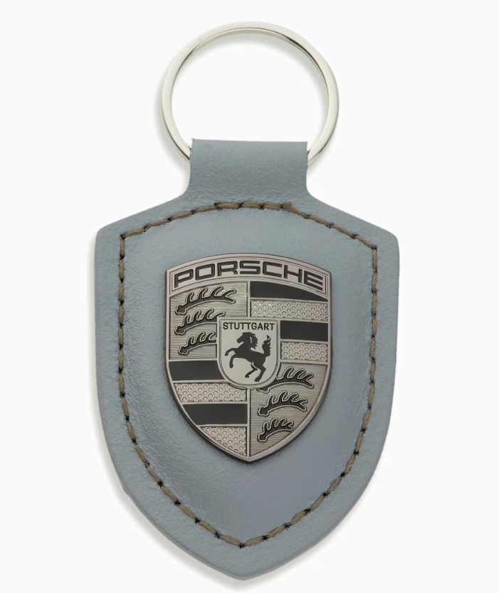 Chaveiro exclusivo em couro genuíno com o inconfundível brasão da Porsche em Turbonite. Fabricado na Alemanha.
