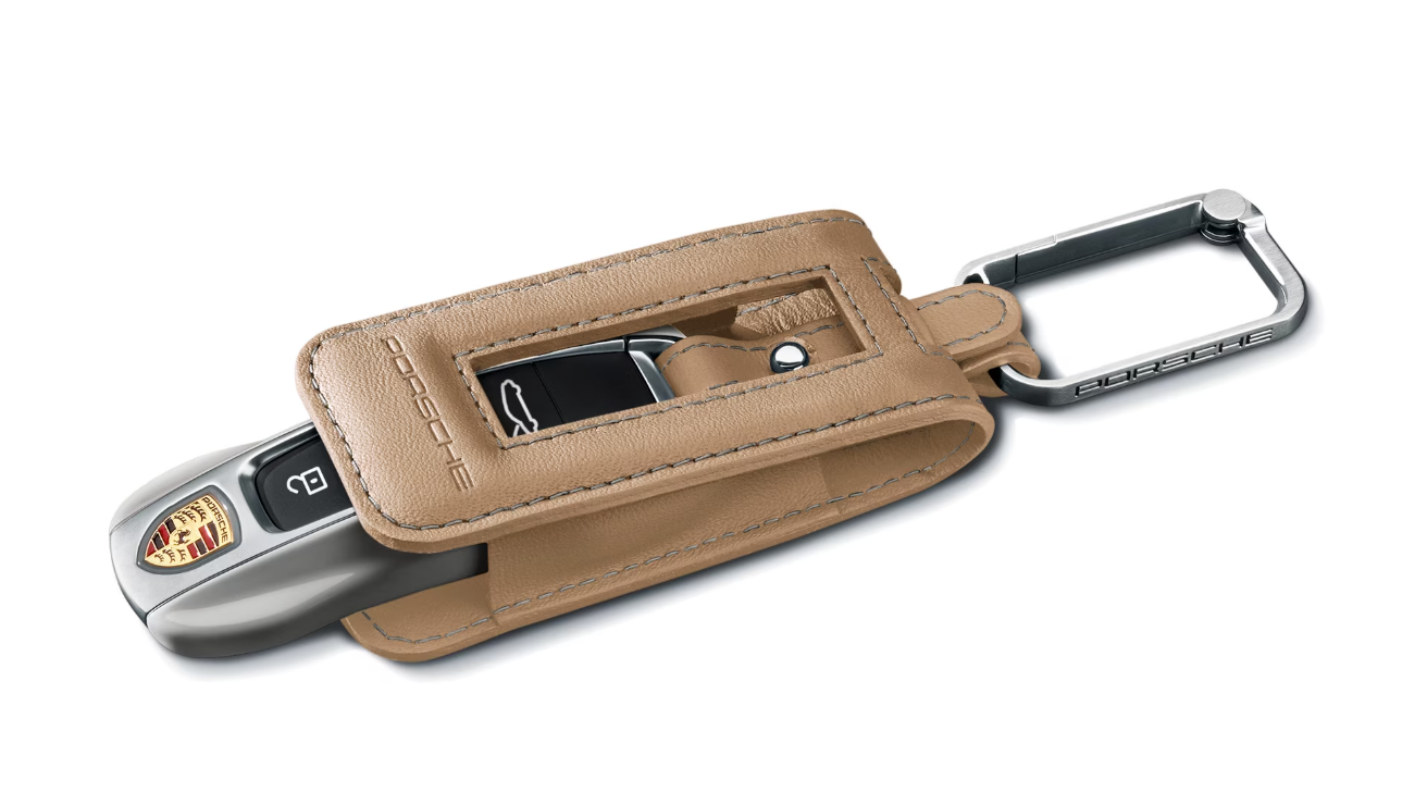 Em couro de acabamento liso em cor interior selecionada, com brasão da Porsche em alto-relevo e costura decorativa.
