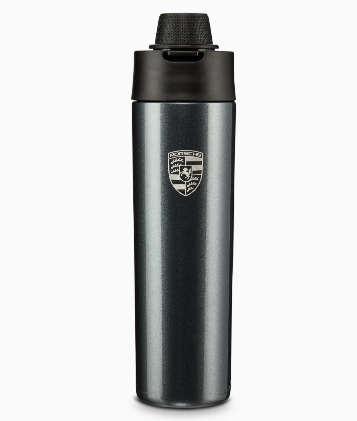 Para viagens longas ou uso diário, esta elegante garrafa térmica mantém sua bebida a uma temperatura constante. Feita de aço inoxidável com parede dupla, cuidadosamente pintada e adornada com a inscrição Porsche gravada a laser, ela é ao mesmo tempo elegante e funcional. A tampa é particularmente marcante, com um design que lembra o botão Drive Mode de um volante Porsche.