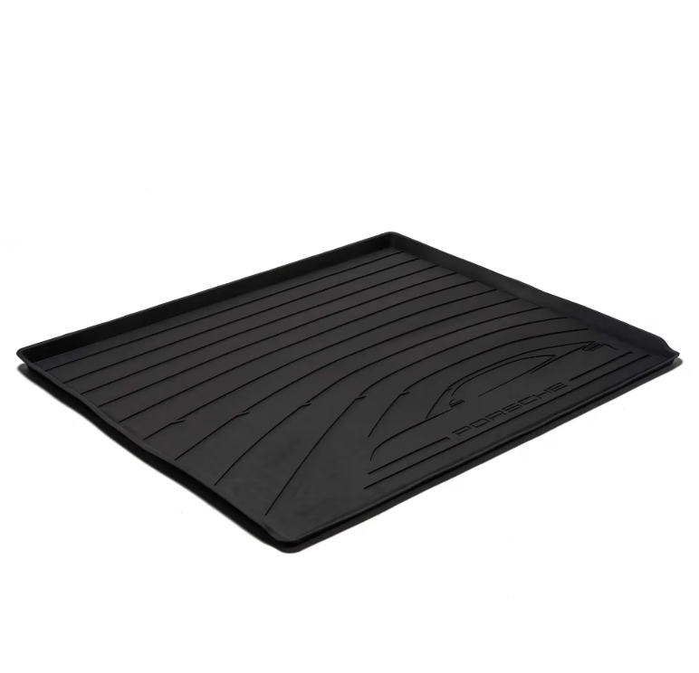O forro personalizado da bagageira para o Macan Electric protege eficazmente a bagageira contra sujidade, humidade e desgaste. O fundo de proteção em Preto impressiona pelo seu design atrativo com silhueta do veículo e logótipo "PORSCHE". O fundo de bagageira plano é feito de material impermeável de alta qualidade e pode ser facilmente limpo, se necessário. Isto significa que a bagageira está sempre em perfeitas condições e pronta para todas as aventuras que quiser viver com o seu Macan Electric.