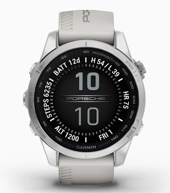 Uma fusão de funcionalidade e design inconfundível: o smartwatch multiesportivo GPS Garmin® com detalhes exclusivos da Porsche como epítome de desempenho e estilo – para atletas, aventureiros e qualquer pessoa com um estilo de vida ativo. Com memória de 32 GB, o smartwatch oferece um mostrador digital com dois mostradores personalizáveis individualmente: analógico clássico ou digital moderno. Além disso, pode ser configurado com o emblema da Porsche, letras ou 12 letras diferentes do veículo. O design deste must-have é caracterizado por uma elegante pulseira de silicone com letras Porsche e o emblema Porsche gravado a laser no botão Start/Stop. Combinando com os detalhes, a caixa em aço inoxidável escovado e sem revestimento tem uma borda preta. O belo display AMOLED de 1,2", feito de vidro safira resistente a arranhões, torna o smartwatch um companheiro durável. Além do design marcante, o smartwatch oferece uma gama impressionante de funções: desde monitoramento abrangente da saúde, como monitoramento de frequência cardíaca e saturação de oxigênio 24 horas por dia, 7 dias por semana, até registro de dados fisiológicos importantes, como status de treinamento, VO2máx e tempos de recuperação. Mais de 60 perfis de esportes e atividades ao ar livre e treinos animados apoiam um estilo de vida saudável e ativo. Graças aos dados inovadores do STAMINA, o treino pode ser otimizado e a fadiga evitada. Graças à tecnologia SatIQ™ e à recepção multifrequência, é possível registrar rotas e navegar com precisão. Além disso, o smartwatch é equipado com lanterna LED para maior orientação e segurança à noite e o sensor HR Gen5 de última geração. O controle bidirecional proporciona fácil acesso a todas as funções, tanto através da tela sensível ao toque eficaz quanto através dos práticos botões, que garantem uma operação confiável em qualquer situação.