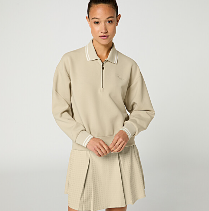Elegante dentro e fora das pistas: a coleção 911 Targa 60Y combina charme retrô com design atemporal em homenagem ao 60º aniversário do esportivo. A jaqueta intermediária destaca-se por detalhes como o zíper frontal até a metade, a gola contrastante em tecido ripstop e o bordado Porsche de alta qualidade no peito e nas costas.
