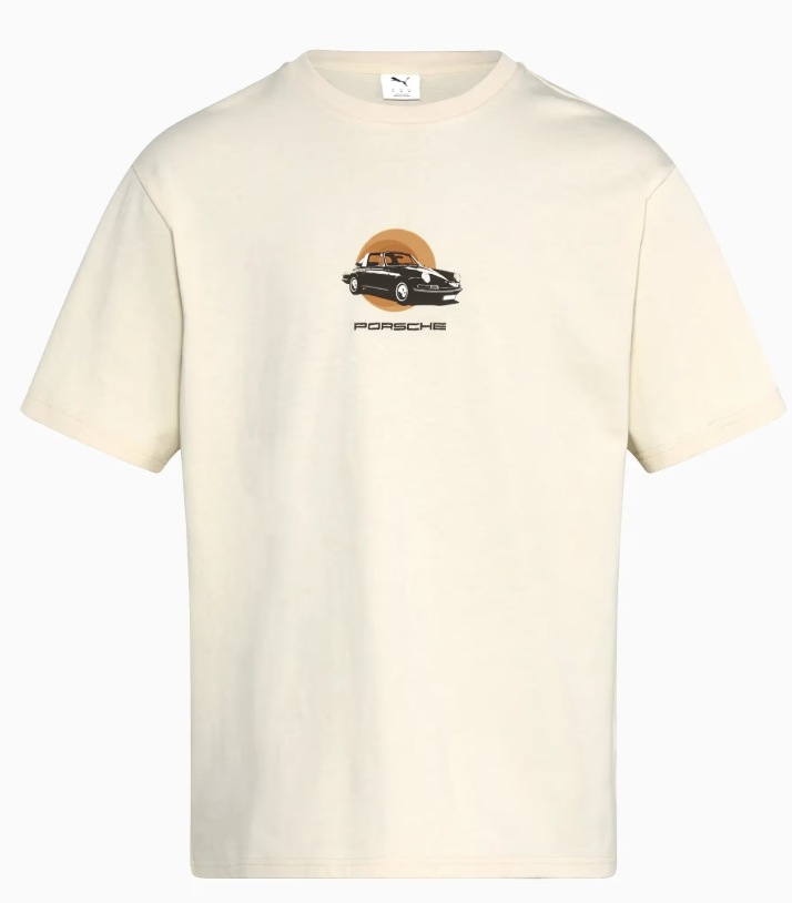 Intemporal, icónica e atenta aos detalhes: a coleção-cápsula 911 Targa 60Y combina o charme retro com um design intemporal em homenagem ao 60.º aniversário do automóvel desportivo. A coleção-cápsula retoma elementos históricos da primeira geração do Porsche 911 Targa e reinterpreta-os em peças-chave selecionadas.A t-shirt em algodão de alta qualidade é um item indispensável para os verdadeiros fãs do Porsche 911 Targa. Na parte de trás: uma grande ilustração da primeira geração do Porsche 911 Targa, inspirada num histórico cartaz publicitário da Porsche de 1967. O motivo é combinado com o logótipo original bordado do modelo Porsche 911 Targa. Uma pequena impressão gráfica e a marca da Porsche bordada acrescentam detalhes de design subtis na parte da frente. Uma peça de afirmação que é extremamente confortável de usar.